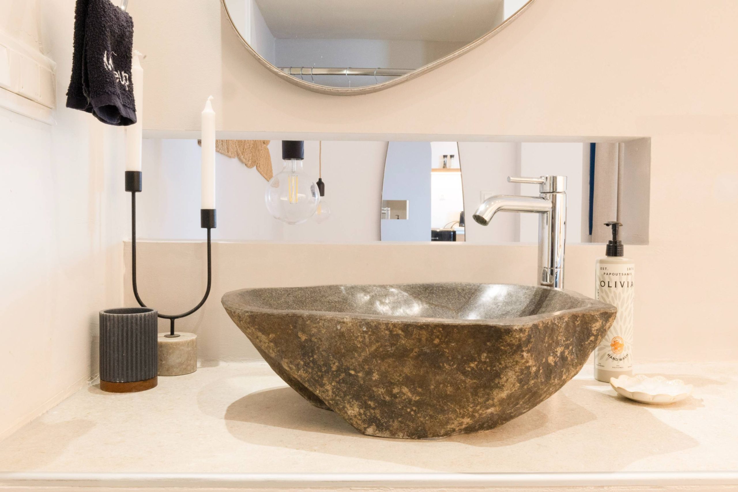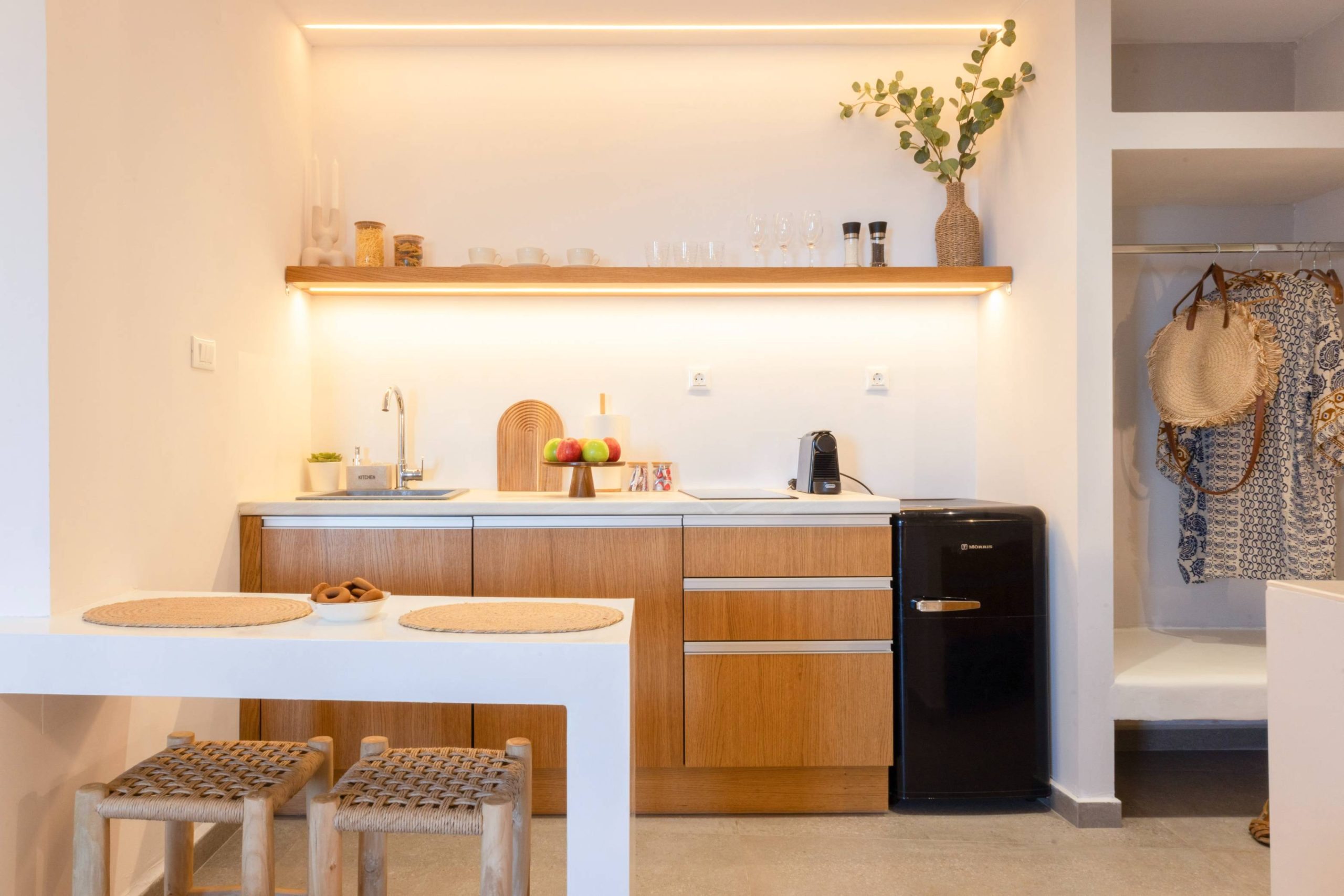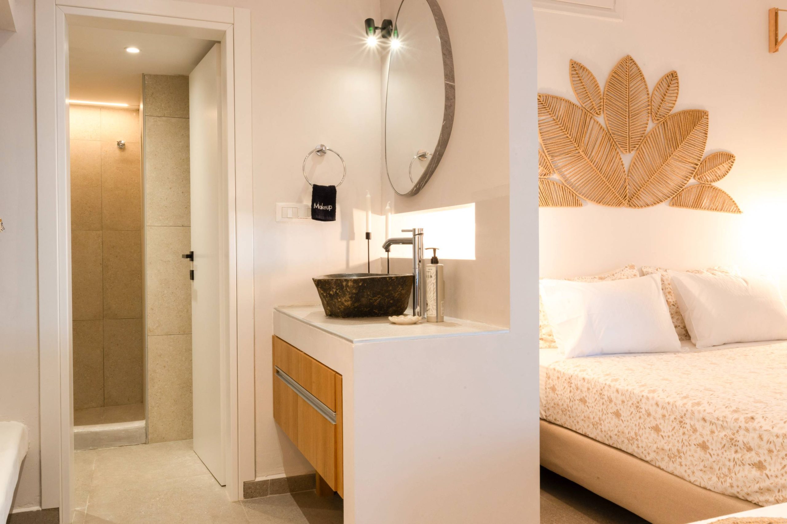 Ένα κομψό, πλήρως ανακαινισμένο studio που συνδυάζει τη σύγχρονη αισθητική με τις παραδοσιακές νησιώτικες γραμμές. Οι απαλές γήινες αποχρώσεις, ο ζεστός κρυφός φωτισμός και οι αρχιτεκτονικές καμπύλες δημιουργούν μια ατμόσφαιρα χαλάρωσης και διακριτικής πολυτέλειας.