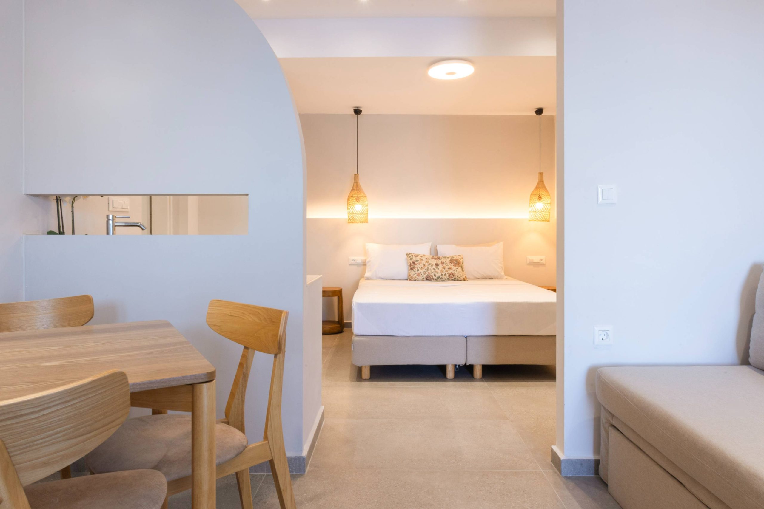 Ένα ευρύχωρο, σύγχρονο studio με ιδιωτική βεράντα και θέα στο Αιγαίο, που μπορει να φιλοξενησει έως 4 άτομα. Διαθέτει πλήρως εξοπλισμένη κουζίνα, εστίες, ψυγείο, νεροχύτη, μηχανή espresso και βασικά σκεύη, ιδανικά για ελαφριά γεύματα και χαλαρά πρωινά στον χώρο. Με ατμοσφαιρικό φωτισμό, διακριτικό κρυφό LED και ενσωματωμένο Bluetooth ηχείο δημιουργεί την τέλεια ατμόσφαιρα ηρεμίας και χαλάρωσης.